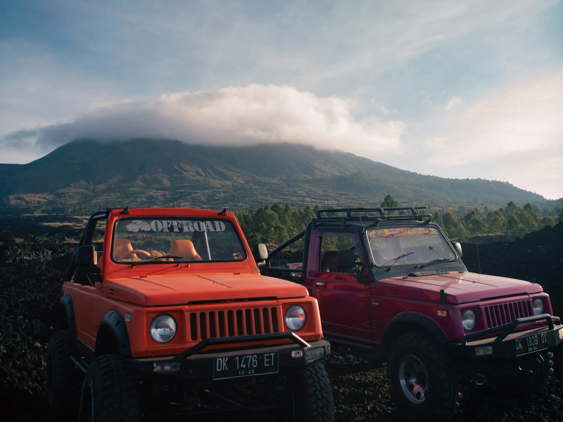 Day Trip Mount Batur Jeep Tour trip around Mount Batur and enjoying the best spot in Bali without any hiking by foot sit on the classic 4 wheels Jeep and drive until 1.360 Meter above sea level and then stunning